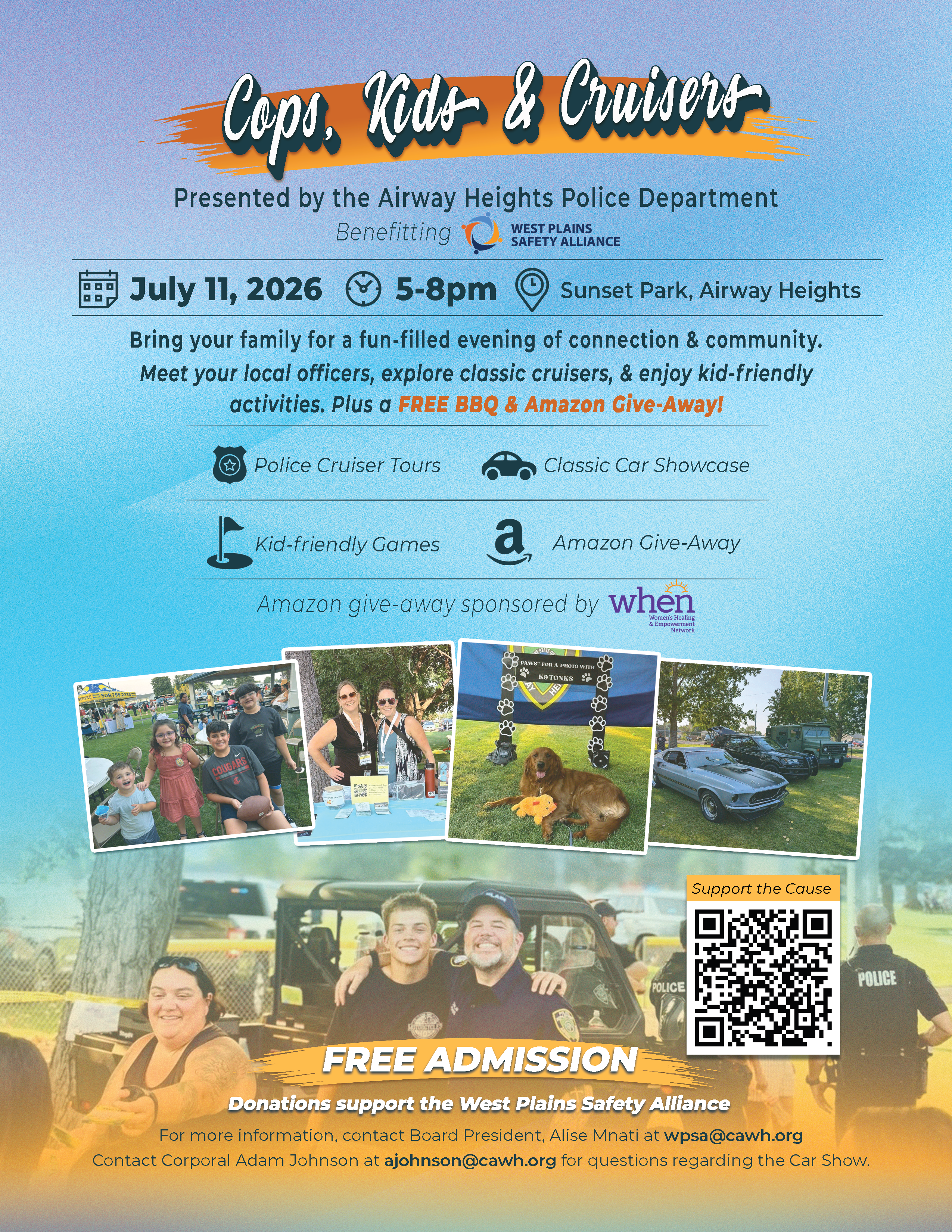 Free admission! Bring your family for a fun-filled evening of connection & community. Meet your local officers, explore classic cruisers, and enjoy kid-friendly activities. Plus a FREE BBQ AND AMAZON GIVE-AWAY!